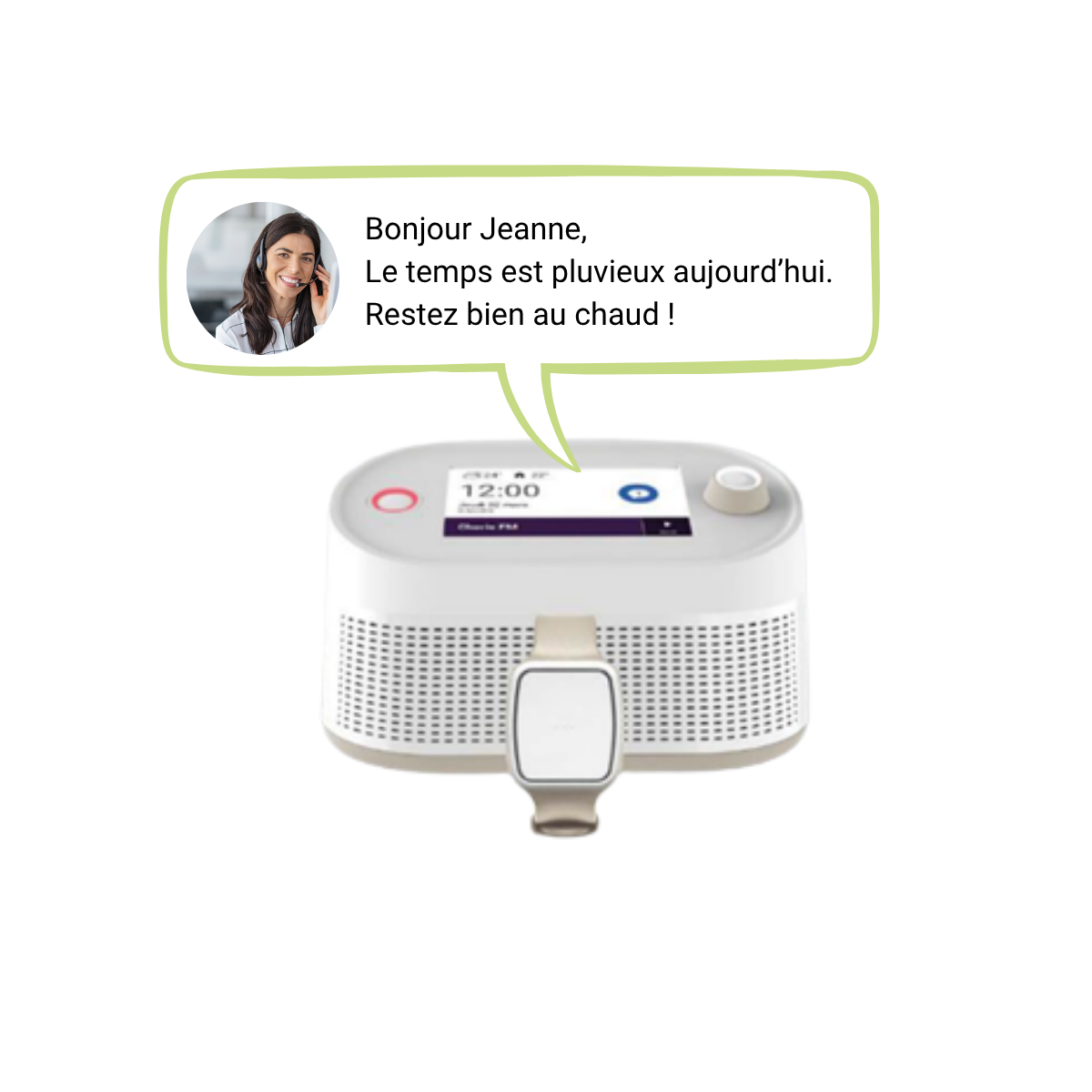 Je vis seule et cette solution m’apporte une vraie tranquillité d’esprit. En cas de besoin, je peux appeler immédiatement et parler à quelqu’un. J’aime aussi beaucoup la radio intégrée, ça me tient compagnie dans la journée.